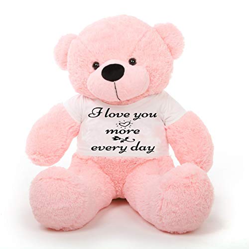 Hug'n'Feel Soft Toys Big Teddy Bear Wearing I Love You More Every Day T-Shirt 3 feet Pink_T Shirt_I Love You More Every Day Plush & Stuffed Toys