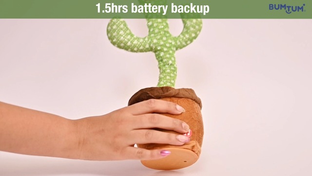 Interactive Feature: Tap the button on the cactus's body below and it will start wiggling swaying and singing along to the music. It's guaranteed to bring laughter and joy to everyone around.; Battery: USB Charging with 1hr plus battery life. Entertainmen