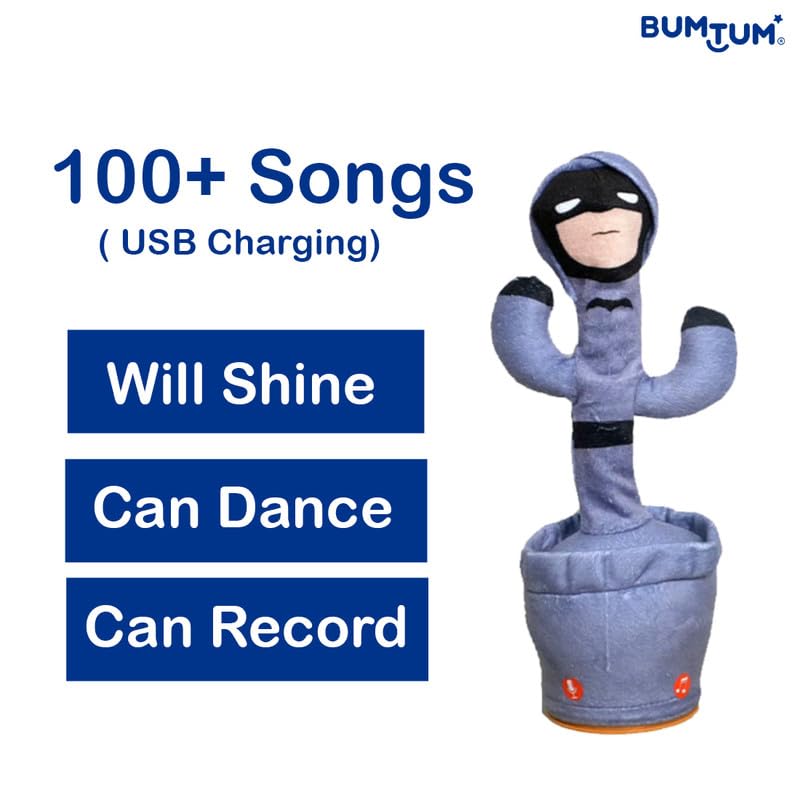 BUMTUM Dancing Singing Batman Theme Character Toy, Wriggle & Singing for Babies & Kids, Plush Musical Electronic Toys, Voice Recording Repeats(Silver)