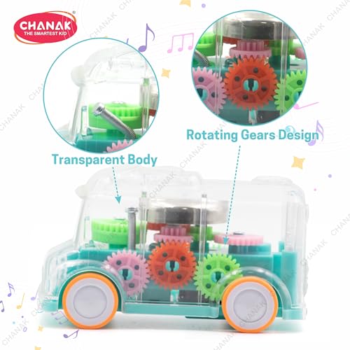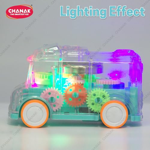 Chanak Transparent Gear Bus for Kids Mini School Bus with Tinkling Sound and Light Toy for Kids Above 3 Years BIS Approved (Light Blue)