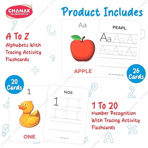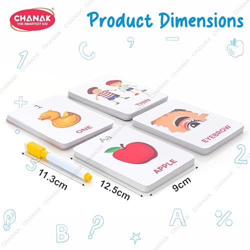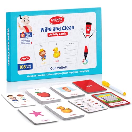 Chanak Wipe & Clean Toy for Kids Educational Activity Flashcards Learn Numbers Alphabets Colors & Other Activity with 108 Flashcards with Marker for Kids Above Age 3 BIS Approved