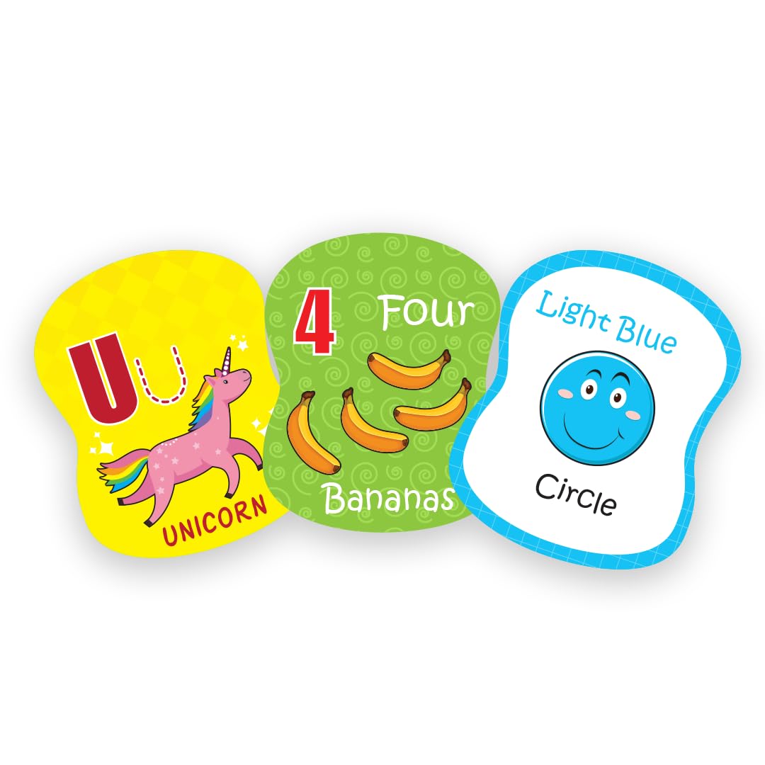 Engaging Learning Tool Includes 50 vibrant flash card Images covering Alphabets Letters Numbers Shapes & Colors to enhance early childhood education and preschool learning.