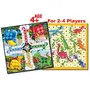 DINO LUDO: Help guide your pack of dinosaurs to their babies in this exciting game of chasing and escaping. Outsmart the other players and win the game. DINOS & VINES: Be the first one to reach the end in this fun race game. Try and reach the vines to climb to the finish line quicker but watch out for the dinosaurs as they attempt to slow you down. The new Dino Ludo and DINO & VINES are suitable for children of the age 4 years and above in a group of 2-4 people. The board has a double-sided back to the back printed layout revealing two different games increasing your childrens fun and excitement all in one box together. Let your kids indulge in this game with family and friends while learning patience persistence and developing their concentration powers. The box contains 1 double-sided playing board 16 plastic pawns 1 single dice and instructions.