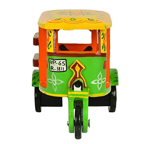 Handmade Colorful Push and Pull Toys Wooden Auto Rickshaw