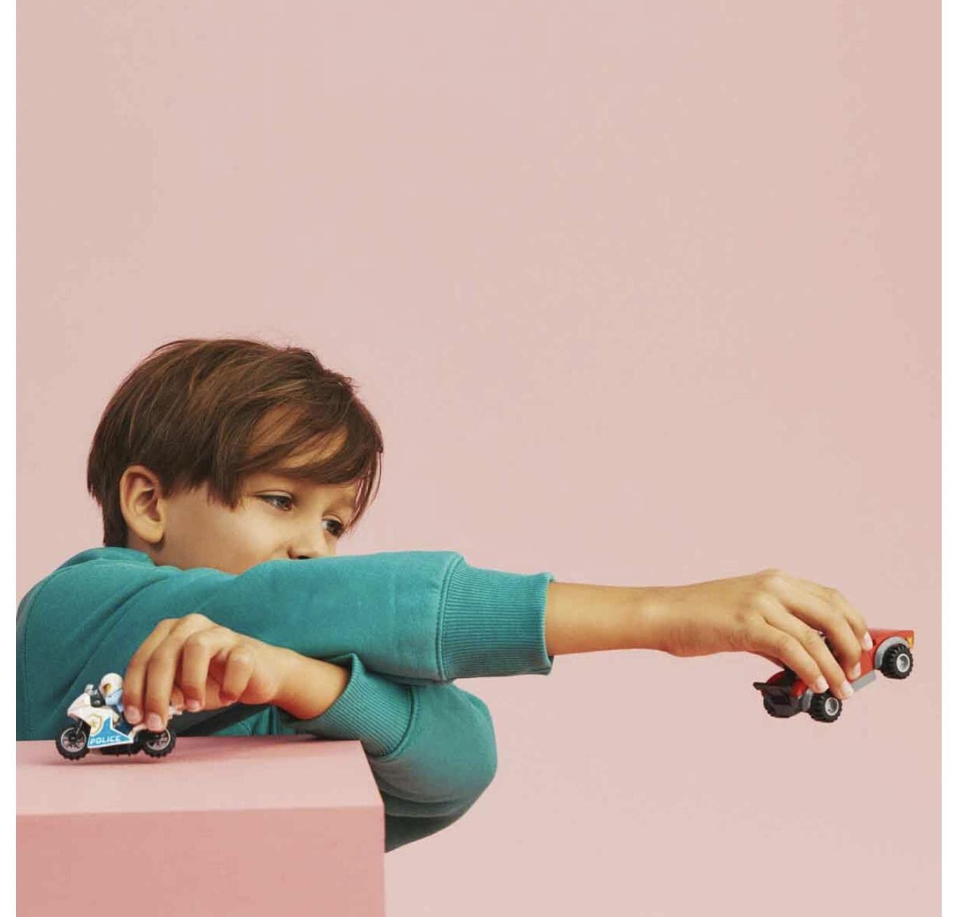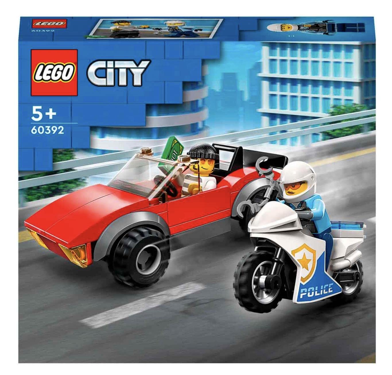 Police chase toy for kids aged 5 and over Hours of fun crook-catching adventures await with this LEGO City Police Bike Car Chase (60392) playset