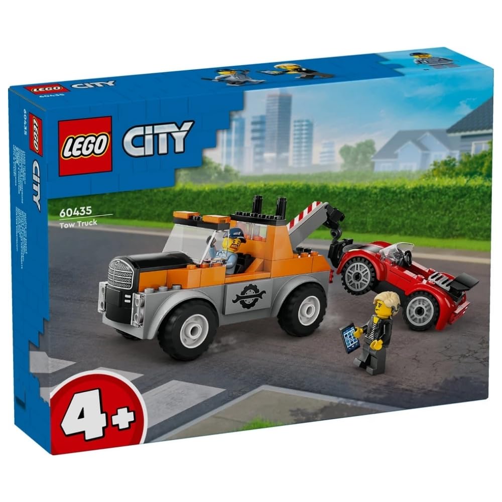 Join your everyday hero for fun adventures with the LEGO City Tow Truck and Sports Car Repair playset (60435) for ages 4+. This creative building set features a toy tow truck with rugged tires a driver's cab and a working hoist. Just add the sports car and driver and motorist minifigures for hours of imaginative play and storytelling. This easy-build LEGO car set includes a LEGO Starter Brick element a pictorial guide and 3D instructions in the LEGO Builder app a digital building companion with intuitive tools that enable kids to zoom in and rotate and visualize models from all angles as they build. LEGO City sets make great holiday and birthday gifts for kids with cool toy vehicles realistic structures and fun characters that inspire imaginative play without limits. Kids can add this truck toy to other sets (sold separately) from the LEGO City range to expand the world of play possibilities.