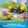 Treat a Minions fan to LEGO Despicable Me 4 Minions and Banana Car (75580). This creative toy for kids features 4 Minions a small car toy plus accessories. It's a fun movie-toy gift for boys and girls aged 6+ and fans of Illumination's Despicable Me 4. Looking for a Minion LEGO set small toy car or a fun gift? Check out the Minions' banana car with its driver's seat and removable engine. The vehicle toy comes with 4 Minions and accessories. Mega Minion Dave can lift the engine in one hand and a weight-lifting bar in the other. Mel paints a picture of a banana while Secret Agent AVL Minion Tim flies by with spinning rotor blades on his head and a remote control in his hand. On the ground is his workstation filled with special tools including X-ray goggles. Pit Crew Minion Ron is on diaper duty at the changing table. He has all the gear including a dirty-diaper-disposal gun. Builders can also have digital fun as they zoom in and rotate sets using the LEGO Builder app.