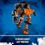 Jointed for play and display The Rocket minifigure fits into the opening cockpit of the fully jointed mech which easily adjusts position to allow endless action possibilities