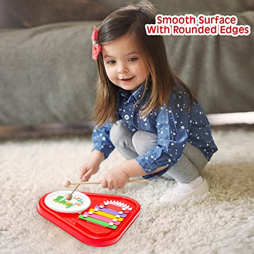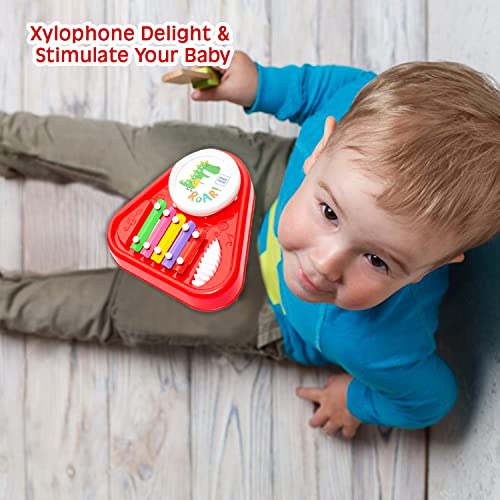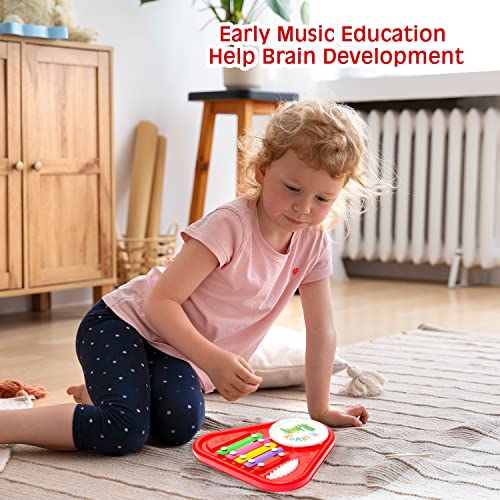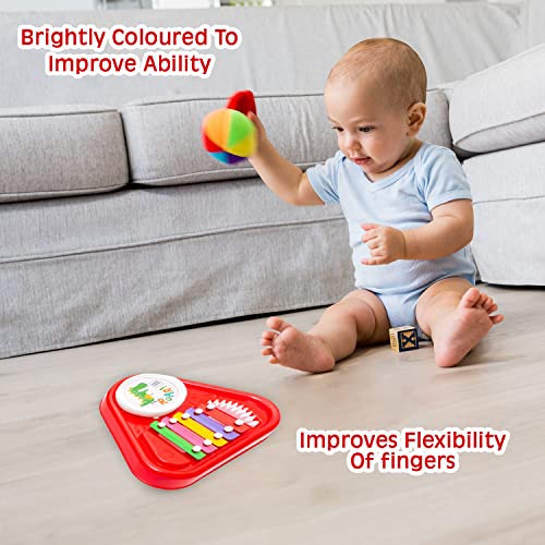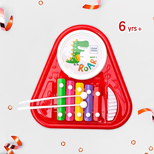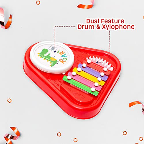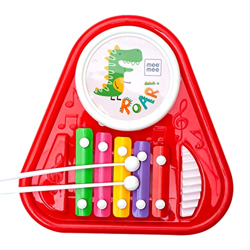 Mee Mee 2 in 1 Cheerful Musical Xylophone Cum Drum, 5 Multicolored Key Keyboard, Toys for Kids (Red)