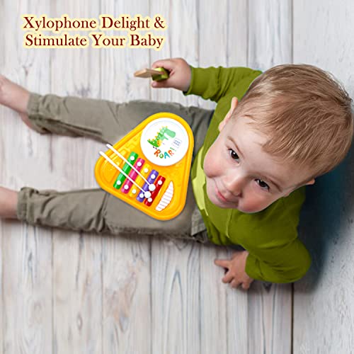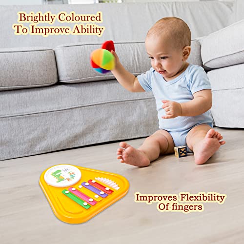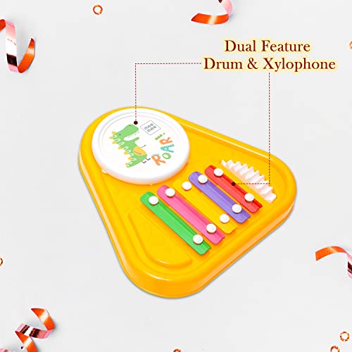 Mee Mee 2 in 1 Cheerful Musical Xylophone Cum Drum, 5 Multicolored Key Keyboard, Toys for Kids (Yellow)