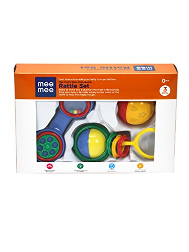 Mee Mee BPA Free Baby Rattles Set, Rattle Gift Set, Made of Food Grade Plastic, Grab Rattles and Soothing Teethers for Babies & Infants, Early Age Toys for Kids, Girls & Boys (Pack of 3, Multicolor)