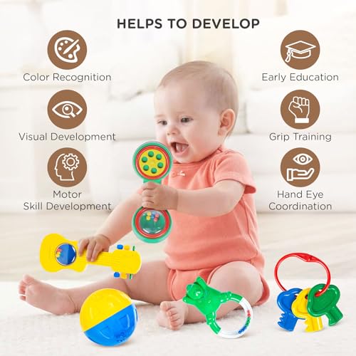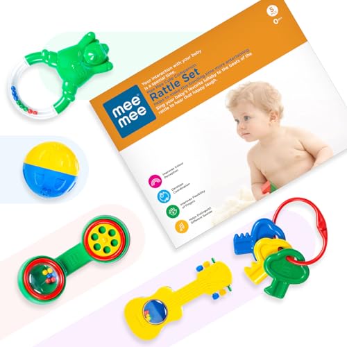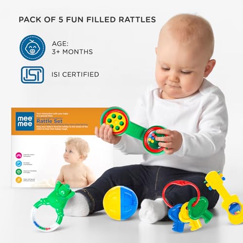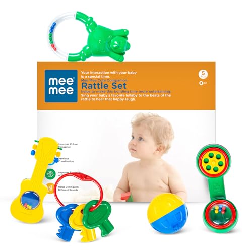 Mee Mee BPA Free Baby Rattles Set, Rattle Gift Set, Made of Food Grade Plastic, Grab Rattles and Soothing Teethers for Babies & Infants, Early Age Toys for Kids, Girls & Boys (Pack of 5, Multicolor)
