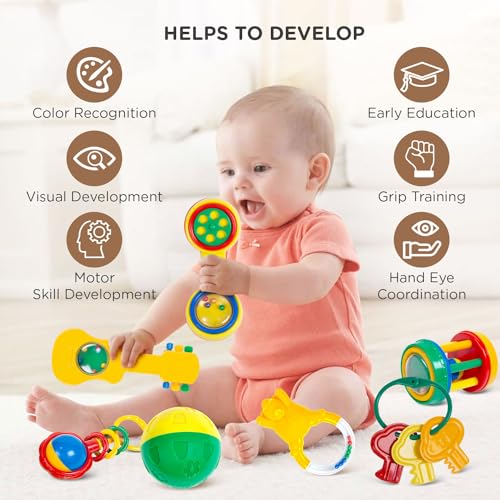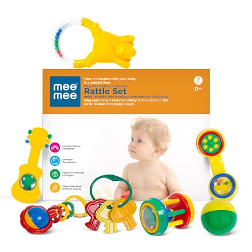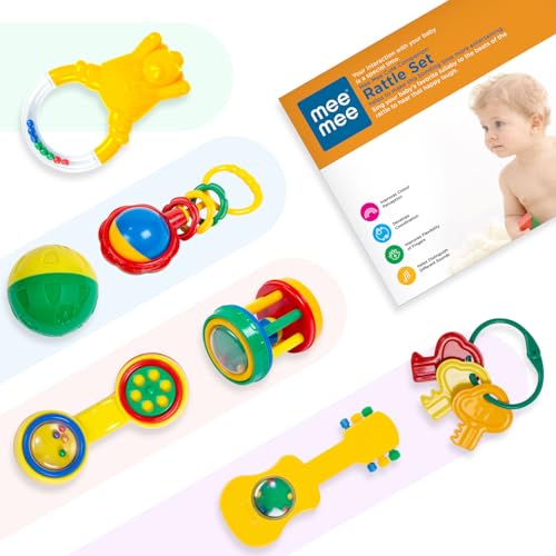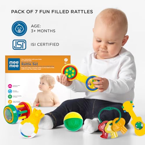 HomeBabyToys & GamesToysMee Mee BPA Free Baby Rattles Set, Rattle Gift Set, Made of Food Grade Plastic, Grab Rattles and Soothing Teethers for Babies & Infants, Early Age Toys for Kids (Pack of 7, Multicolor)