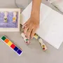 Includes 6 rubber stamps with long wooden handles and a six-color ink pad