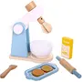 • The wooden blender set has a batter-making machine to the flour and butter and make the cookie mixture. Once it is done they can pour it into a tray and cook them in the oven. They can see cute little biscuits and pretend to eat them and enjoy themselves.