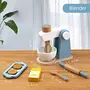 • WOODEN BLENDER ROLE PLAY TOY: The wooden blender machine set is filled with fun and interactive tools like a blender machine packet of flour serving tray mixing bowl rolling and cookies that help in promoting a child's motor skills and initiates simulatio