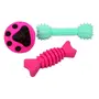 Keep your furry friend entertained and healthy with the Dog Toys Chew Products Set a specially curated collection of chew toys for puppies and dogs of all sizes. This fun and engaging set includes a rubber ball chew candy bone (12 cm) and teething dumbbell (12 cm) offering a variety of textures and shapes to keep your dog entertained. Crafted from non-toxic pet-safe rubber these toys are designed with your dog's safety in mind. Not only do they provide hours of fun but they also serve a dual purpose by massaging gums and relieving discomfort associated with teething. This helps to improve your dog's oral health and reduce destructive chewing habits. These chew toys are washable and durable making them easy to clean and maintain ensuring long-lasting use. The bright and colourful designs along with their bouncy nature make playtime exciting and interactive encouraging healthy exercise and mental stimulation for your pet. Whether for teething puppies or active dogs this chew toy set is a must-have for any pet owner looking to provide their dog with safe engaging and beneficial toys.