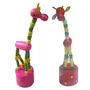 Channapatana Giraffe toy is made of premium wood especially for kids safety. Toy has a button below to press which makes Giraffe to bend down and swing. Handcrafted toys are painted with vegetable dye colors with natural finishing. Keep your kid engage while you are in work. Easy to place bedroom corner table as decor piece and perfect for gifting purpose.