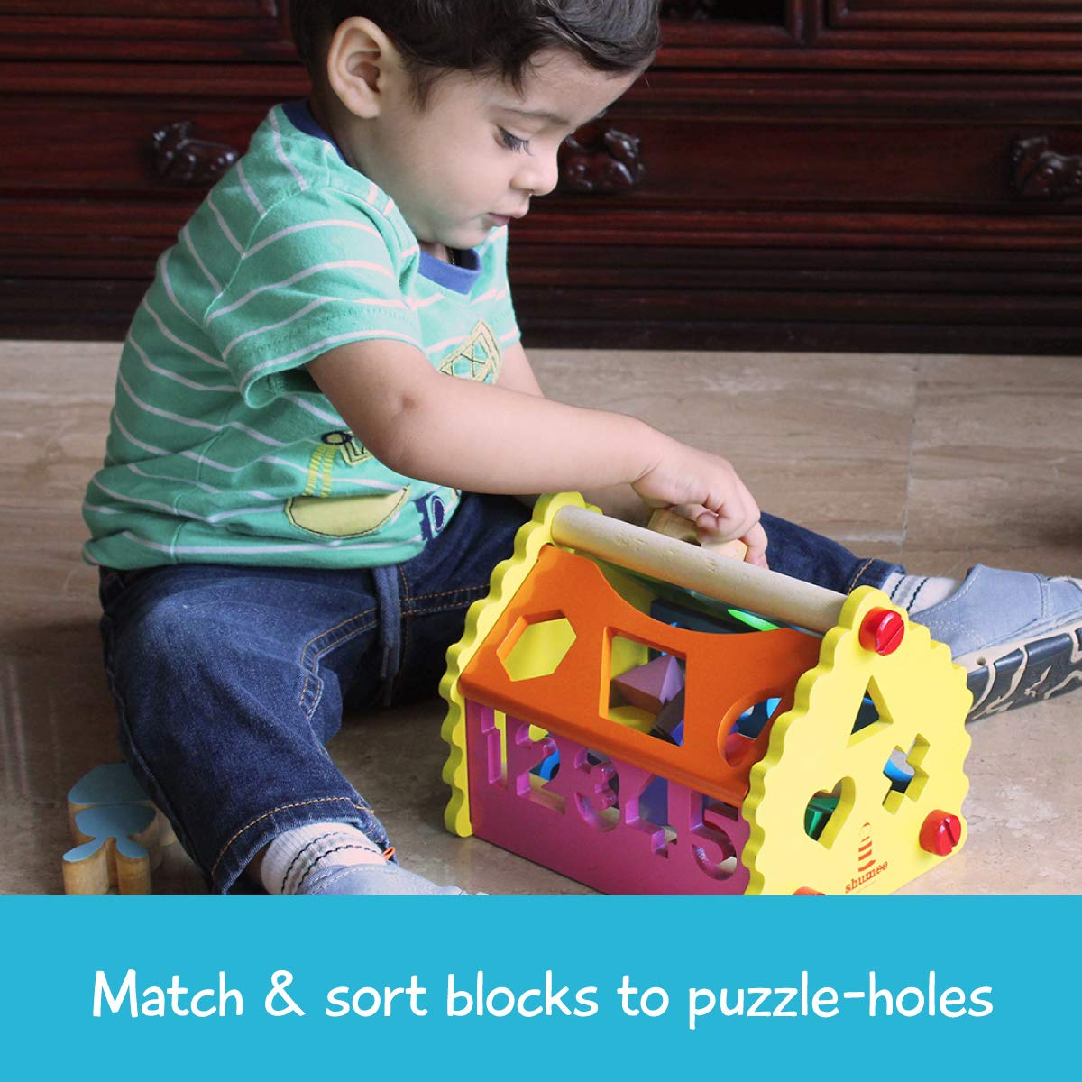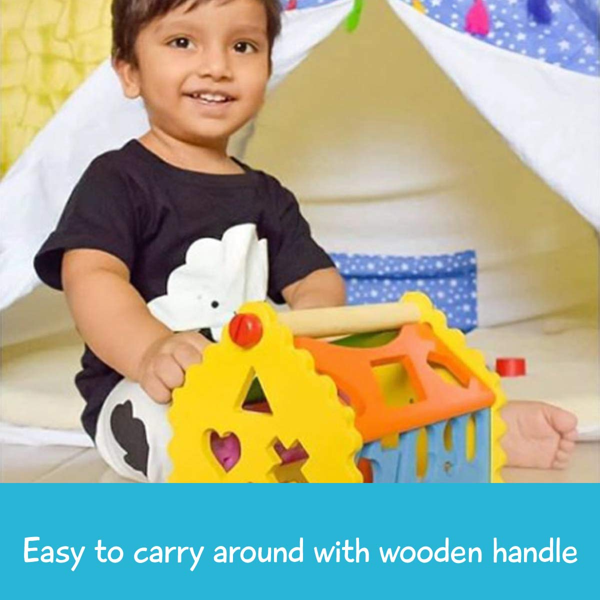 VARANASI WOODEN TOYS Handmade Shape Sorter Toy For Kids-1+Years| Learn Alphabets Time Numbers & Shapes| Educational Toys For Kids Skill Development Montessori Toys for Kids|Ideal Birthday Gift For Kids