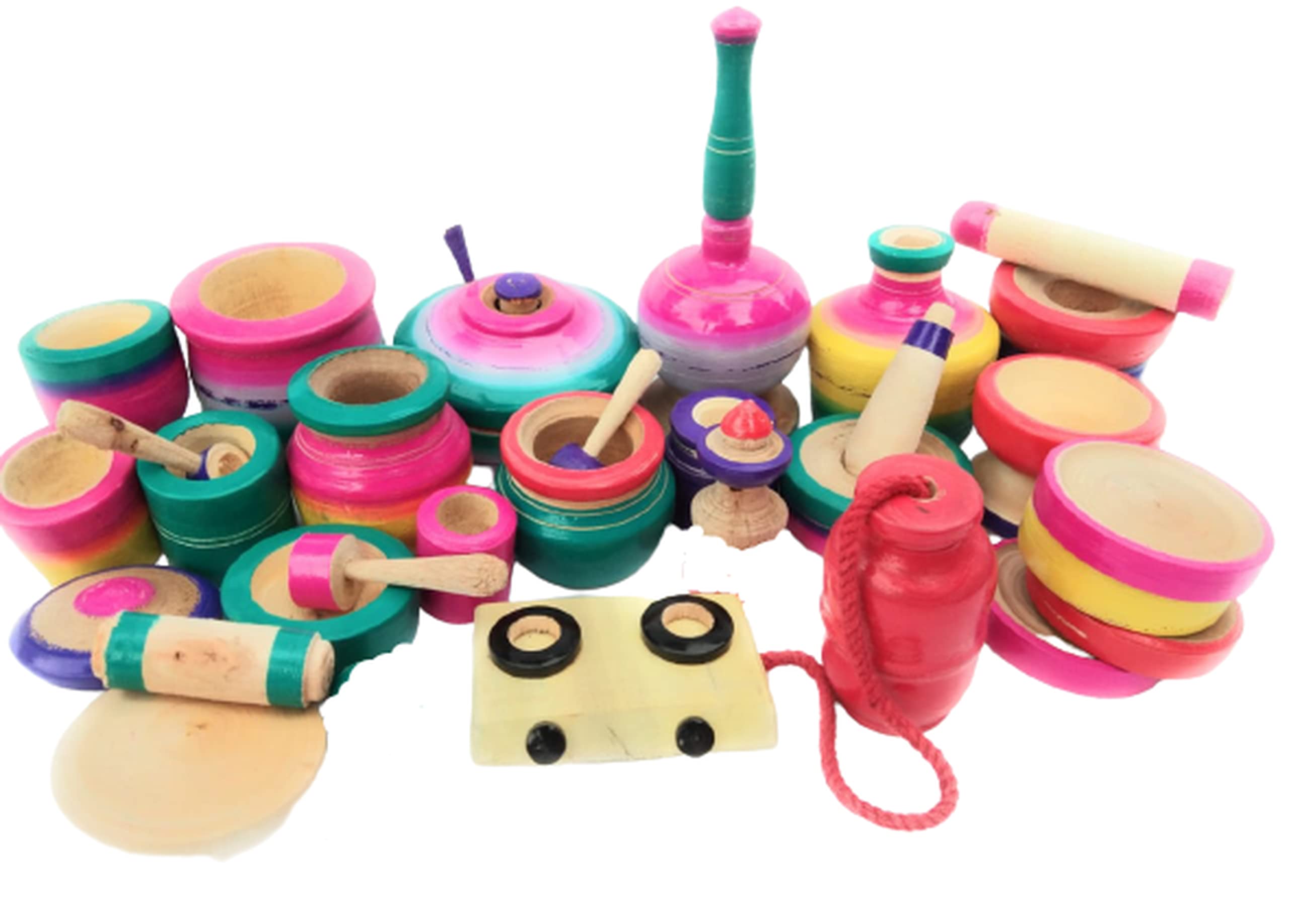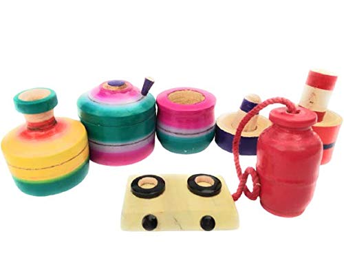 VARANASI WOODEN TOYS 17 pis Choppu Jaman medium size is a Traditional roll play toys for kids.All the wooden utencils are made up of fine wood with polished edges and painted with harmless natural colours. With these wooden toys the environment of your child will be pleasant and Eco-friendly. By giving these wooden toys you are not only helping your child to improve both physical skills and mental ability also contributing to the environment by avoiding plastic usage.Helps the kids to improve the colour identification shapes and objects. Helps the kids to roll play like their Mother.