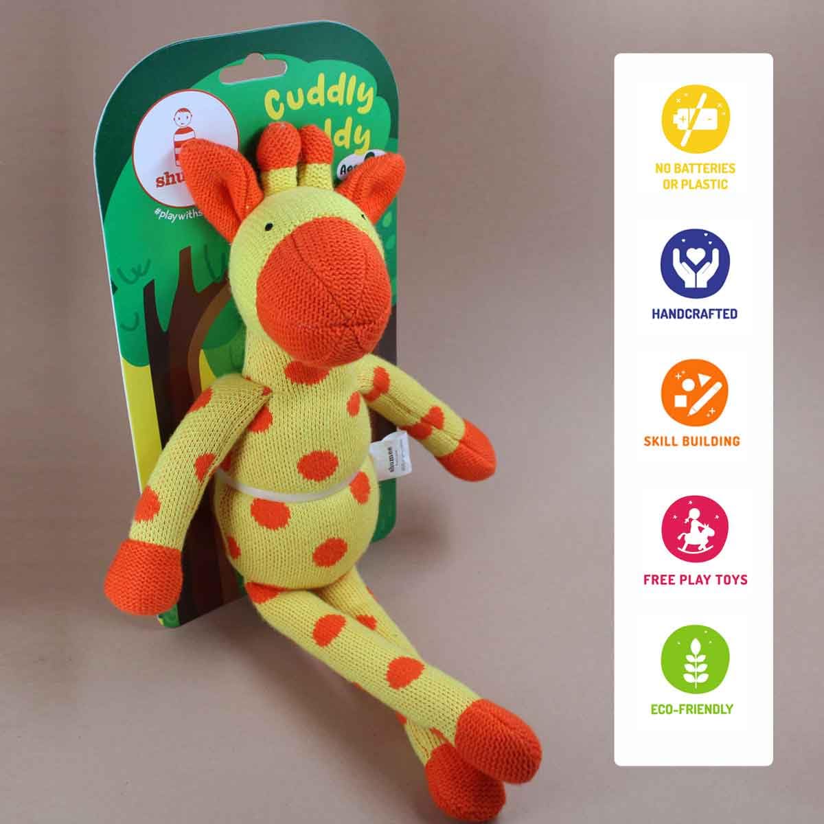 An adorable handmade crochet cuddly buddy that your child will instantly love! This plush toy will help them with communication and self expression hone their sensory skills and offer emotional security. The toy is made with soft organic cotton so it is completely safe for your child to play with. Are you ready to welcome this buddy home?