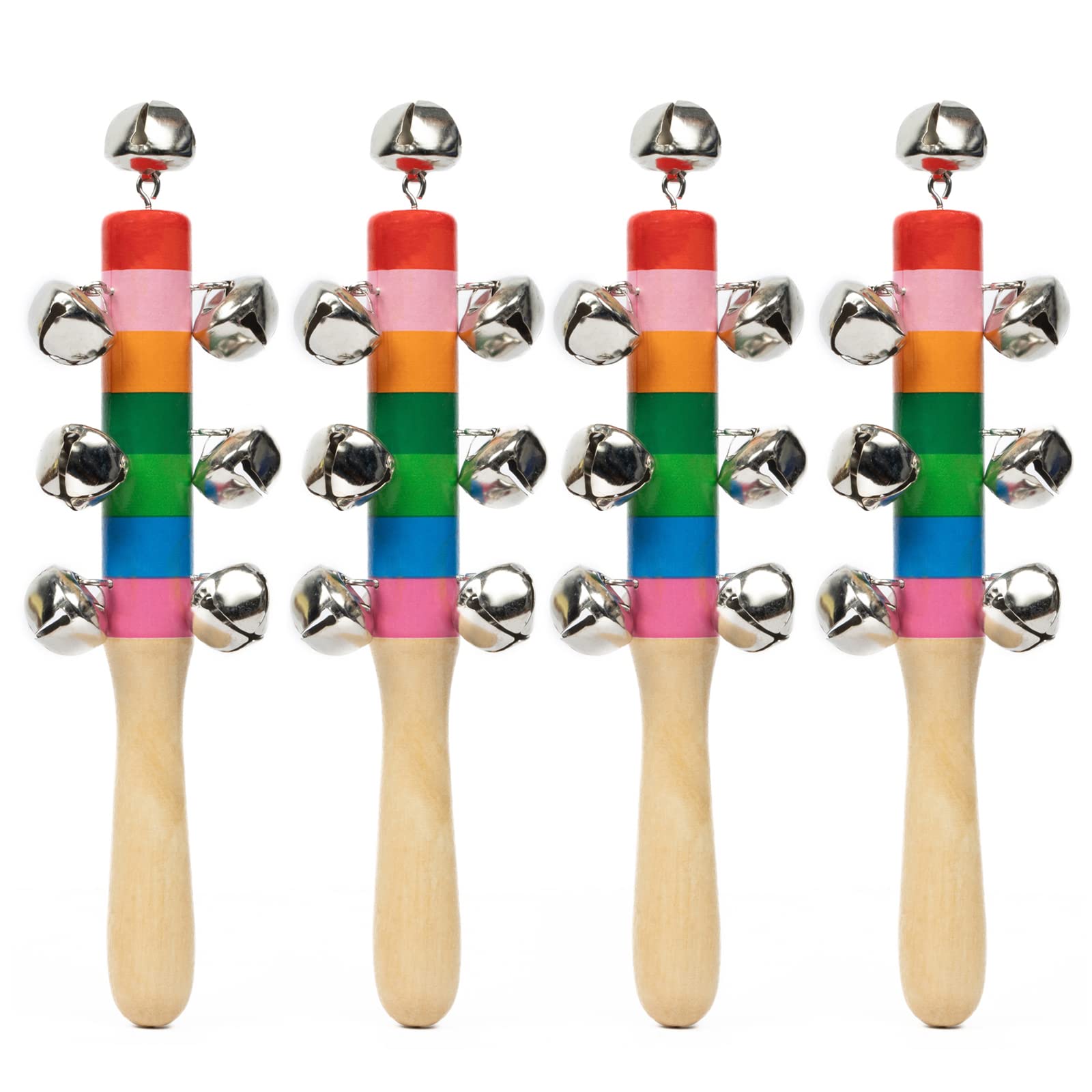 VARANASI WOODEN TOYS Non Toxic Colorful Wooden Baby Rattle Toy - Set of 4 (Jingle Bell) (Color May Vary)