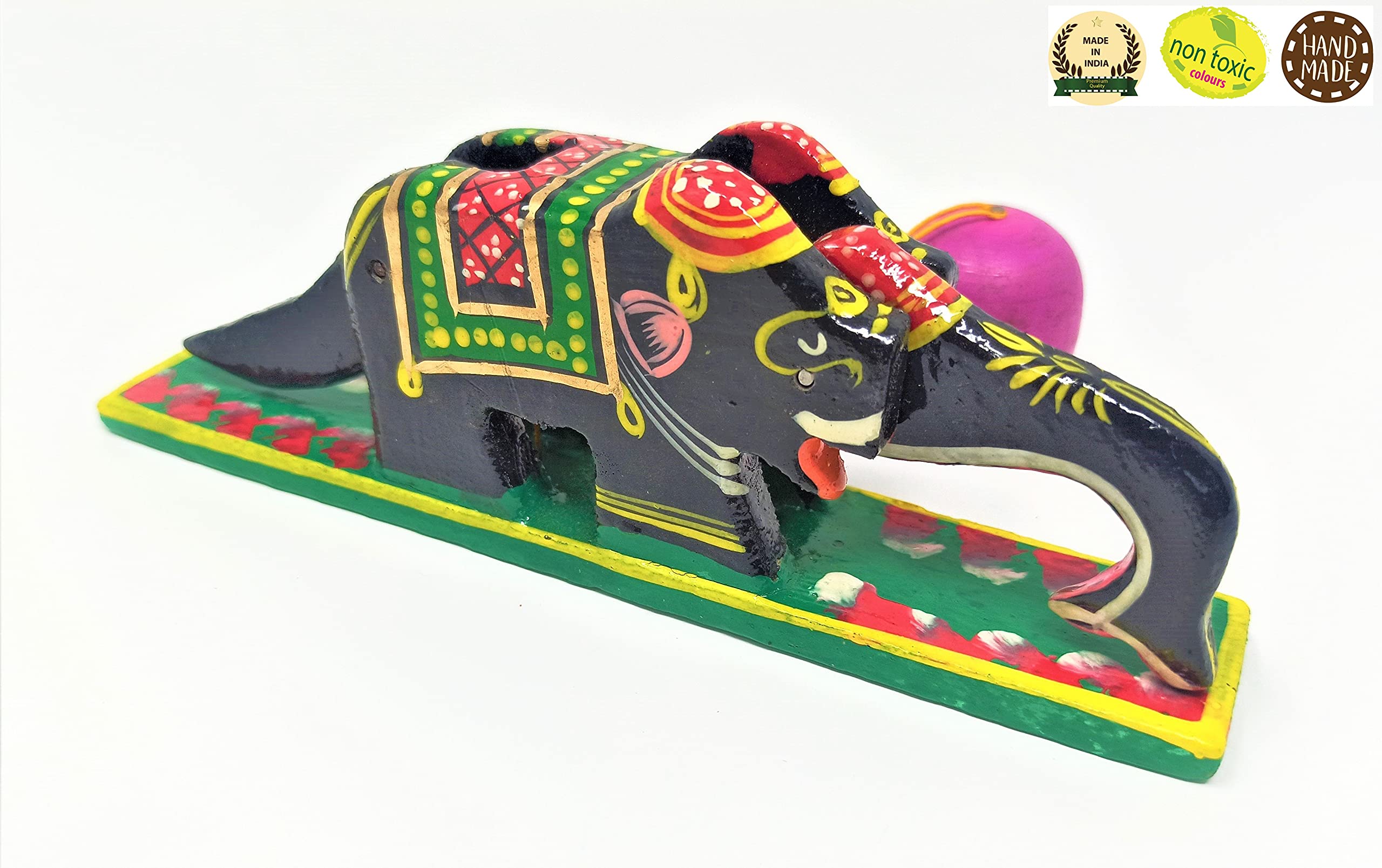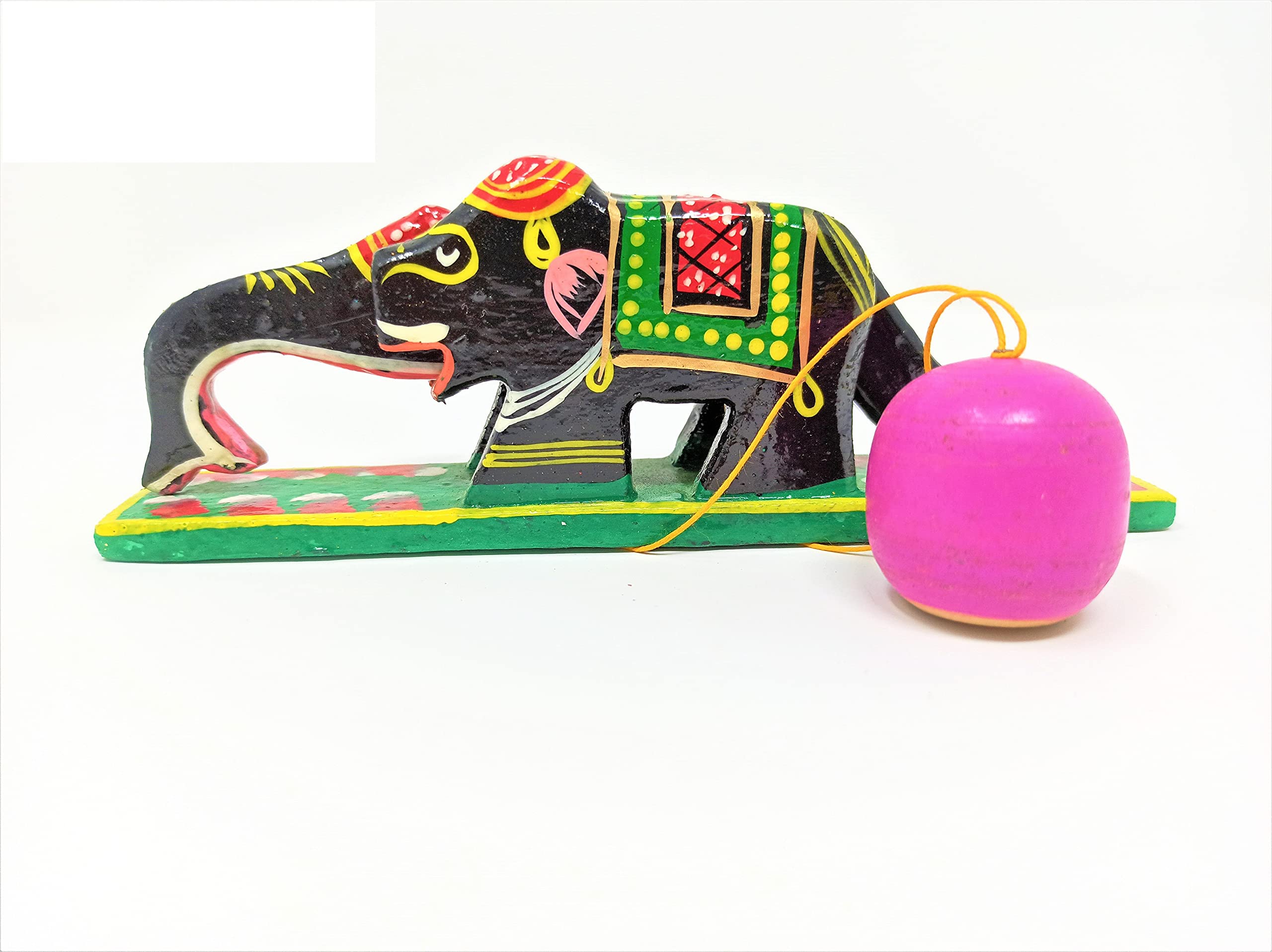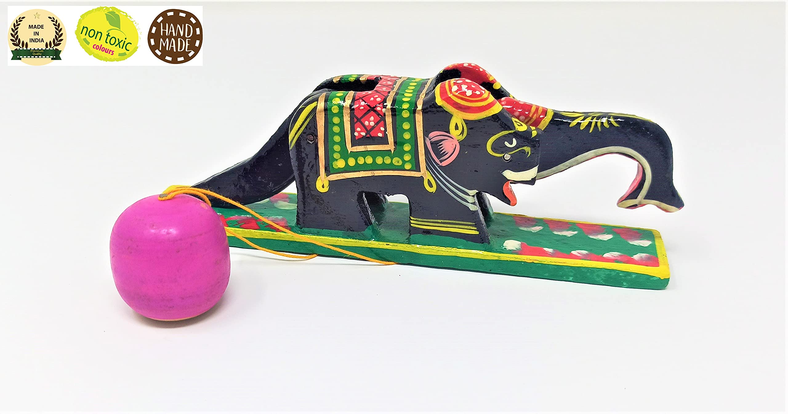 Our Indian Gajraj is here with Go Up and Down Head and Tail coordinated by a ball attached to it by the strings .This toy has been handcrafted by the Artisans of "Benaras".This traditional craft is protected as a Geographical Indication (GI) under the World Trade Organisation.Made from Non Toxic and Safe Colors.