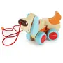 A cute wooden pull along toy Bruno dog with ears that wiggle and a tail that wags making it fun learning for your child as it enhances multi skill development. A two part wooden pull along dog toy with movable parts joined in the middle. Large wheels for easy movement. Ears that move. Tail that wags.
