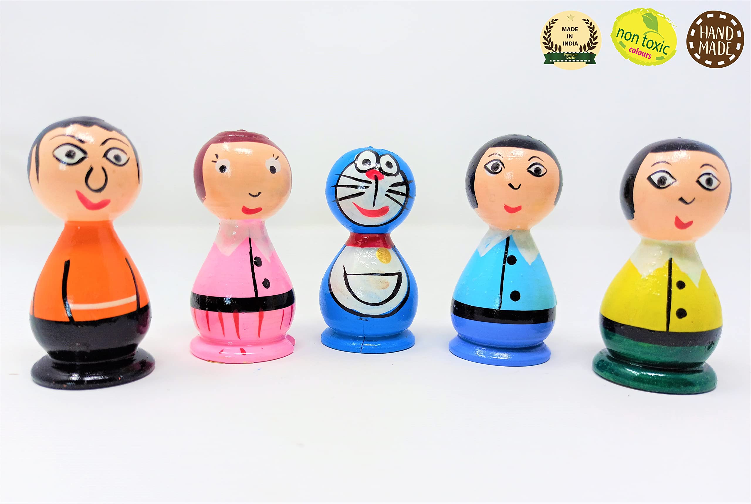 Let the little hands unleash the fun with this cute Cartoon Character Set.It focusses on gross and fine motor skills.This helps little ones to be more active and helps them in their physical growth. These wooden toys have been handcrafted by the Artisans of "Channapatna".This traditional craft is protected as a geographical indication (GI) under the World Trade Organization.It is Made from the Natural Vegetable Coloring Dyes.Non Toxic.Made in India with Love.