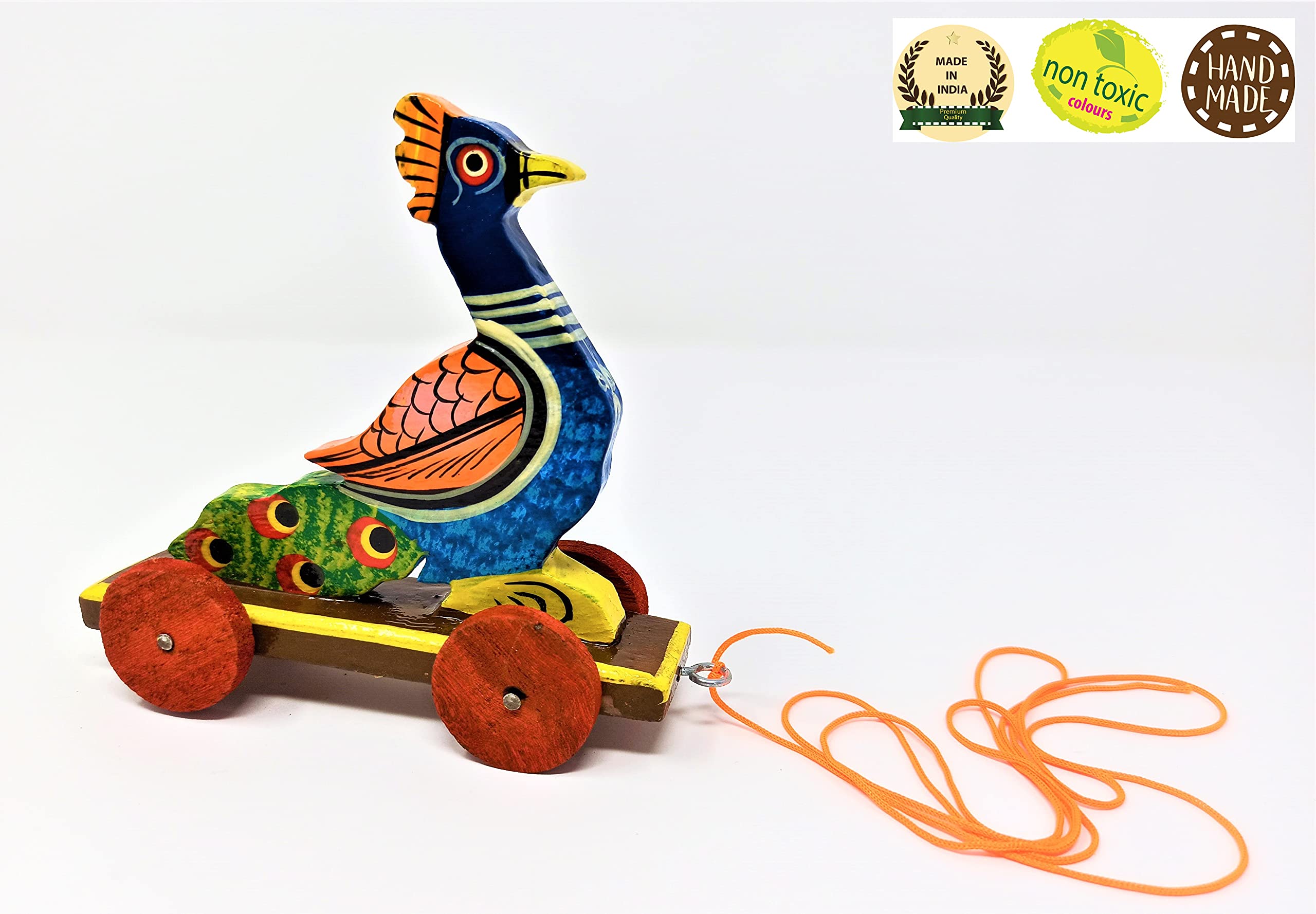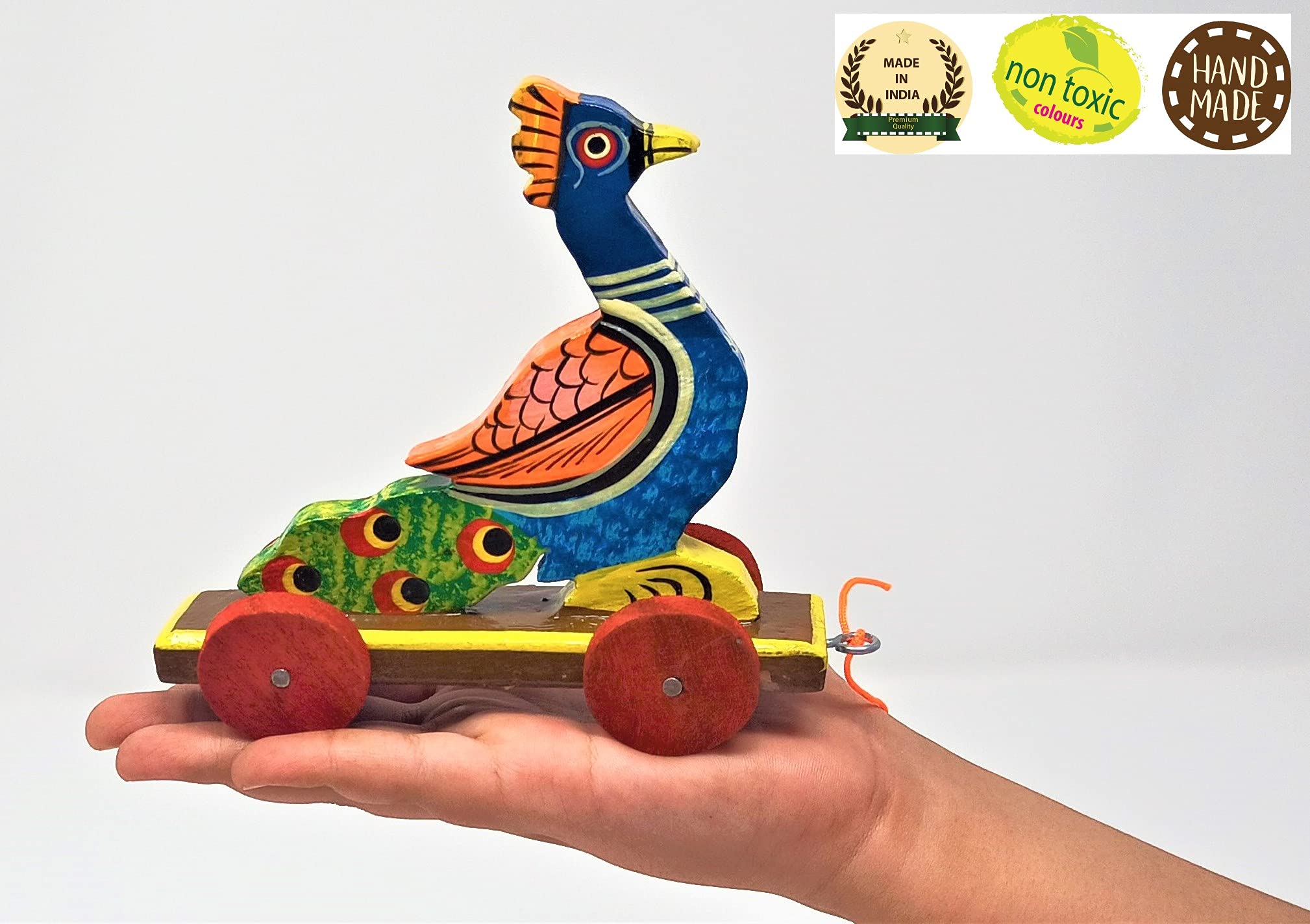 Let The little fingers hold the thread to their Happiness.This pull along fish will follow the little legs where ever they goSo get the wheels rolling. This helps kids in developing Gross Motor Skillsand in increasing their power to Concentrate. These wooden toys have been handcrafted by the Artisans of "Channapatna".This traditional craft is protected as a geographical indication (GI) under the World Trade Organization.It is Made from the Natural Vegetable Coloring Dyes.Non Toxic.Made in India with Love.