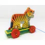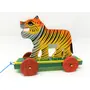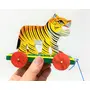 VARANASI WOODEN TOYS Wooden Pull Along Toy Encourage Walking Build Gross Motor Skills and Hand-Eye Coordination Handcrafted by Indian Artisans for Kids Toddlers (Tiger)