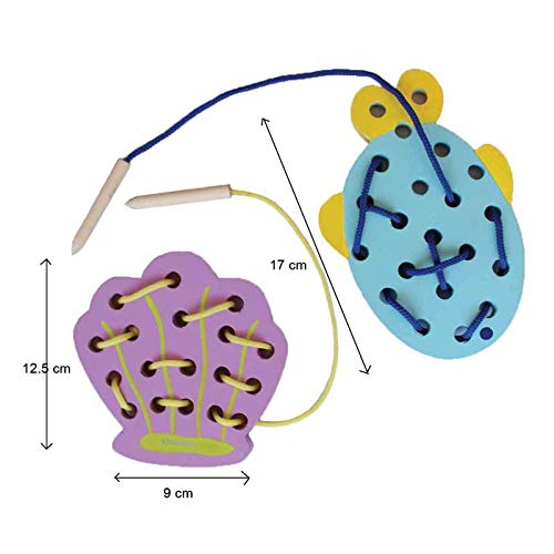 VARANASI WOODEN TOYS Wooden Sea Themed Lacing Toys Set (Age 2+ Years) - Set of 2