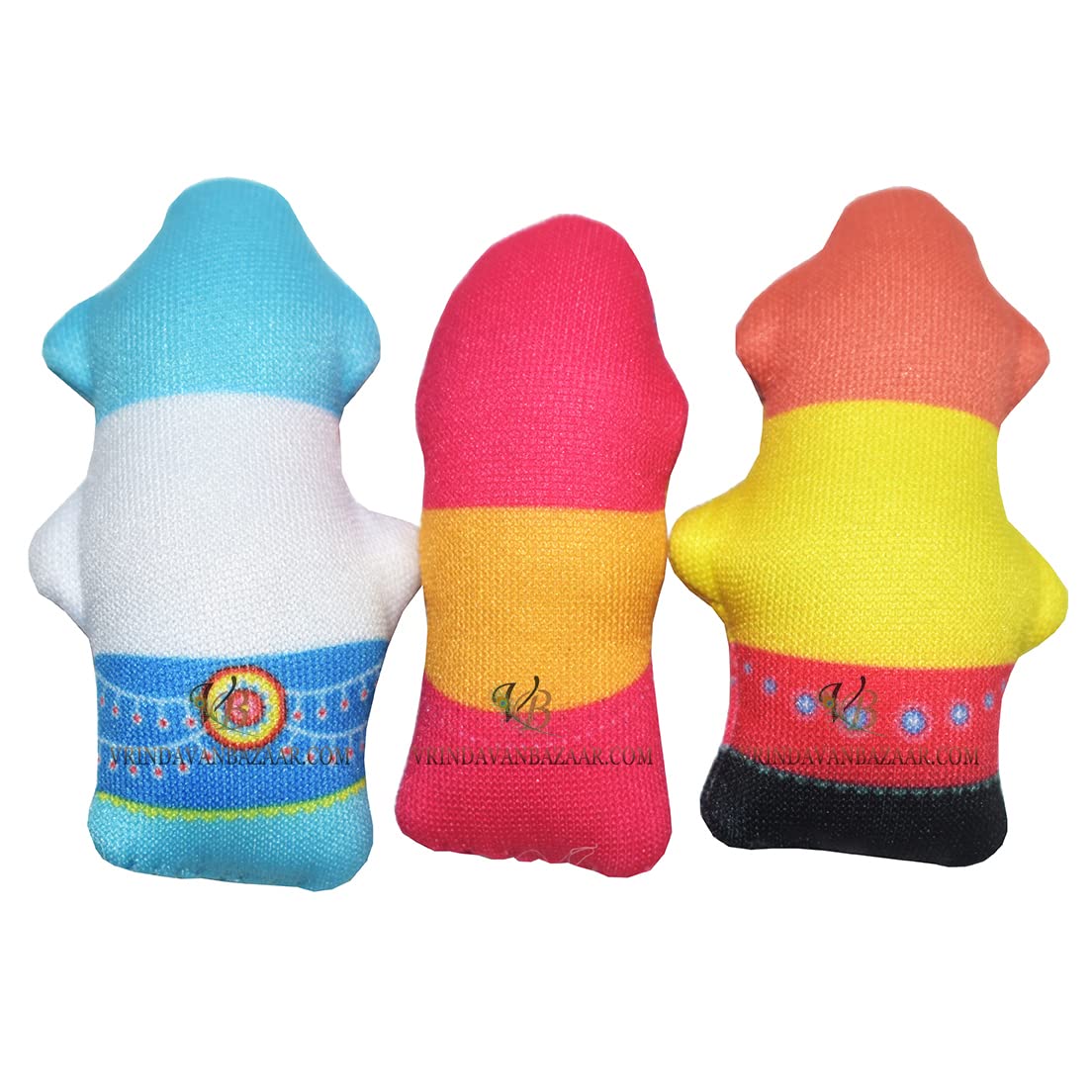 They are very attractive & designed in excellent quality. These are made by the Vraja vasi's of Sri Dham Vrindavan and we promote cruelty free and fair trade policy. These soft toys ensure safety and durability. They are made of high quality materials (Lycra cloth and polycotton). It is washable and non-toxic. Your little child can hug play and cuddle with this adorable toy. Keep feeling good all the time. These toys will encourage the child to interact and are a perfect partner for imaginative play. If you would like to purchase any other dolls please see in the other listing in this section. ** Murlidhar ** Krishna ** Radha ** Balarama ** Nanda Baba and Yashoda Mata ** Lalita gopi ** Visakha gopi ** Cow ** Calf ** Hanuman ** Ravana ** Pink shila ** Blue shila ** Govardhana shila ** Madhu Mangal ** Dhenukasura demon ** Vatsasura demon ** Narayana shila ** Nrsimha shila ** Shiva ** Parvati ** Nandi ** Ganesha ** Vraj Monkey ** Nrsimha deva & Prahlada maharaj (available only as a set) ** 5 Pandus - Yudhisthira Bhima Arjuna Nakula and Sahadeva (available only as a set) ** Gaur-Nitai Yellow print (available only as a set) ** Gaur-Nitai Multi-coloured (available only as a set) ** Rama Sita & Laksmana (available only as a set) ** Asta sakhis - eight gopis (available only as a set) ** Jagannath Baladev Subhadra (available only as a set)