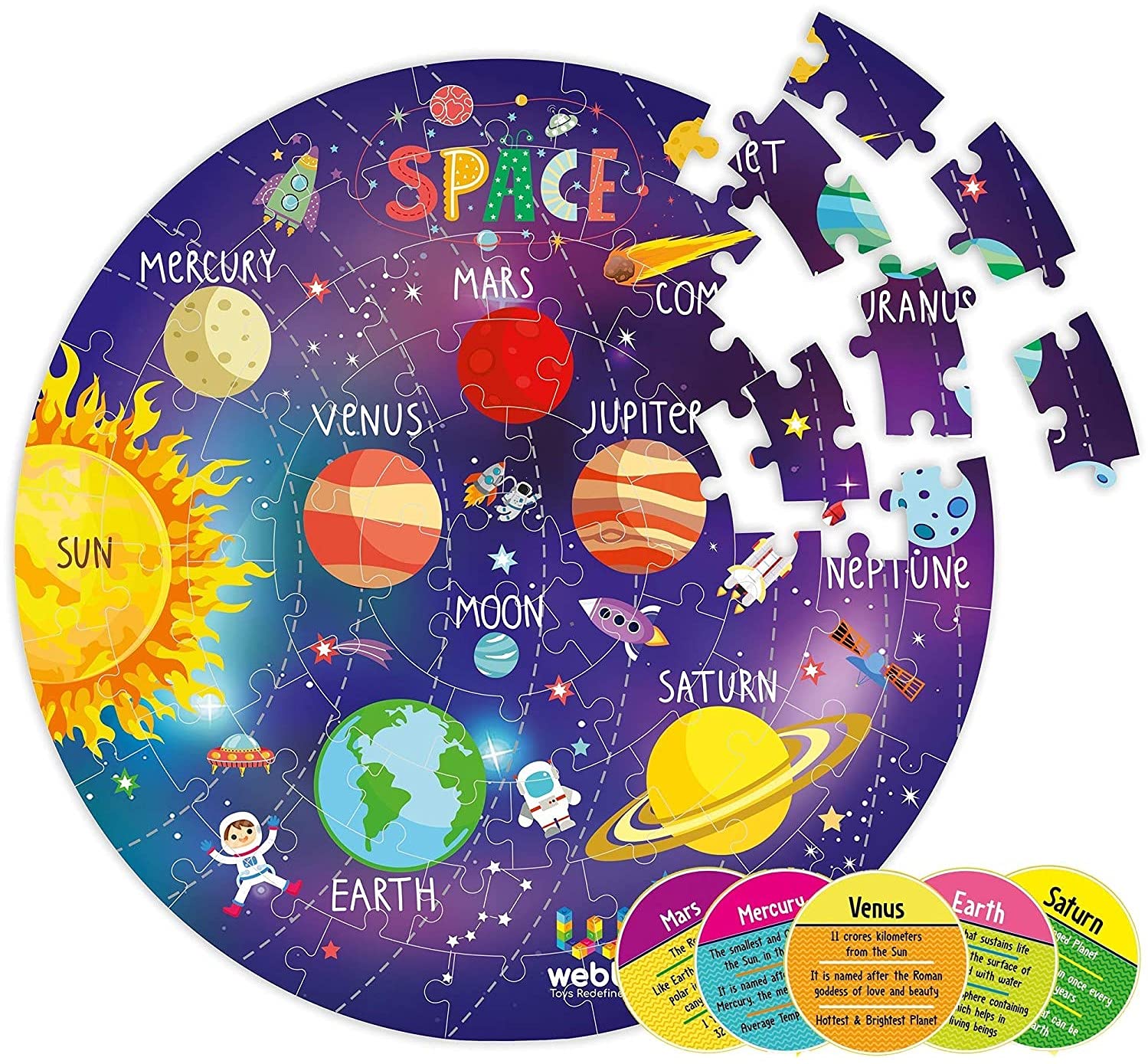 EDUCATIONAL: This Webby Solar System Jigsaw Puzzle provides educational value to the kids. The knowledge of all planets is well taught with this colourful jigsaw puzzle set